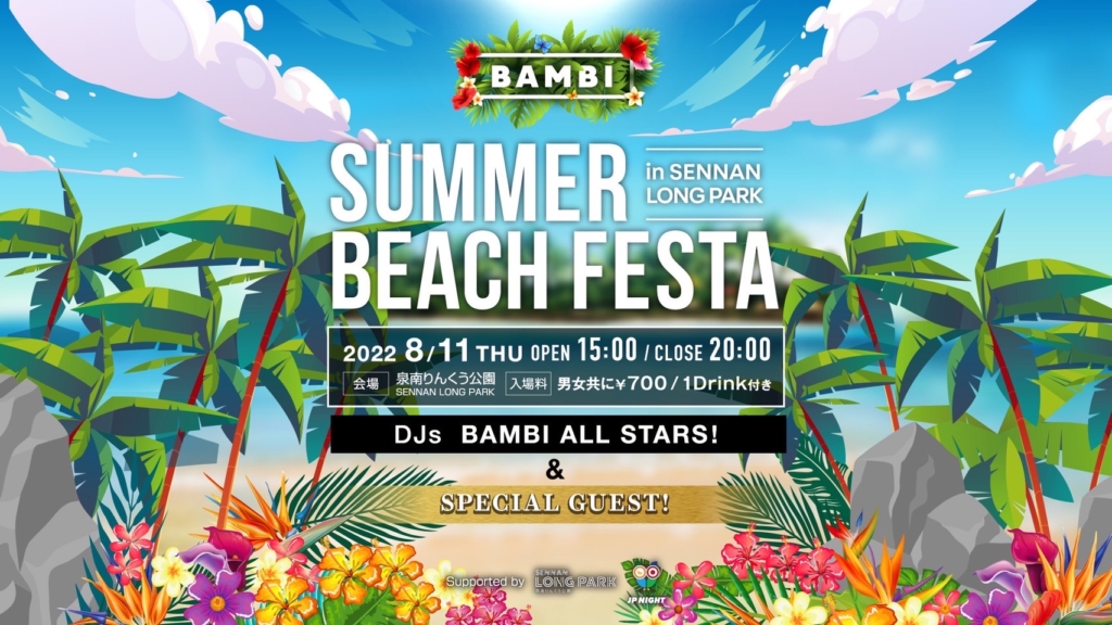 大阪で勢いのあるクラブハウスBAMBIが屋外フェスをSENNAN LONG PARK にて開催決定🙌
