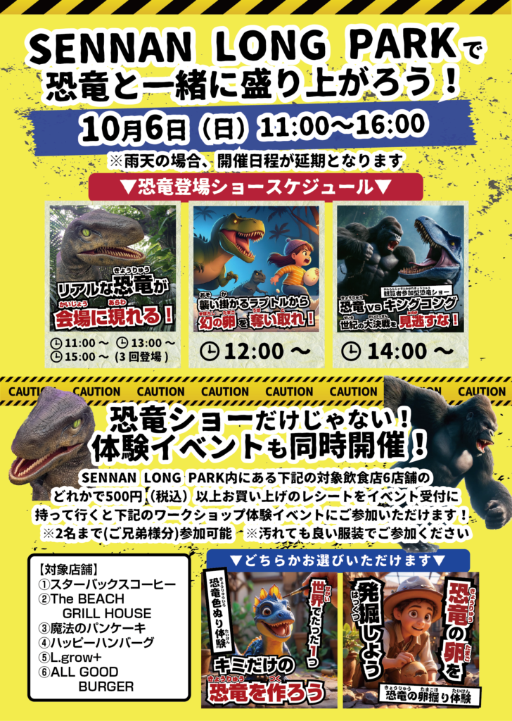 雨天で延期になっていた リアル恐竜イベント が、10月6日(日)に開催されます🎉
