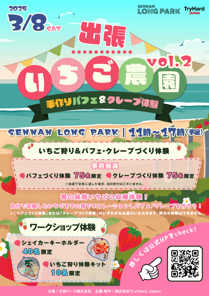 お申込みは👉『出張いちご農園Vol.2 イチゴ狩り&パフェ/クレープづくり体験』