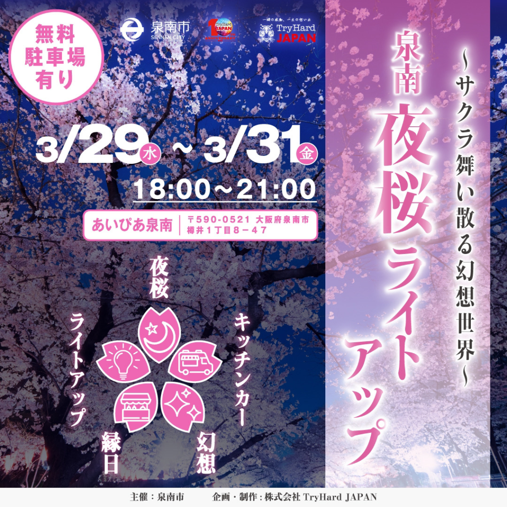3月29日(水)~3月31日(金)泉南夜桜ライトアップ🌸