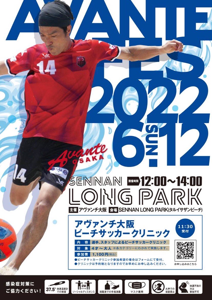 6月12日(日)AVANTE OSAKA ビーチサッカークリニック⚽
