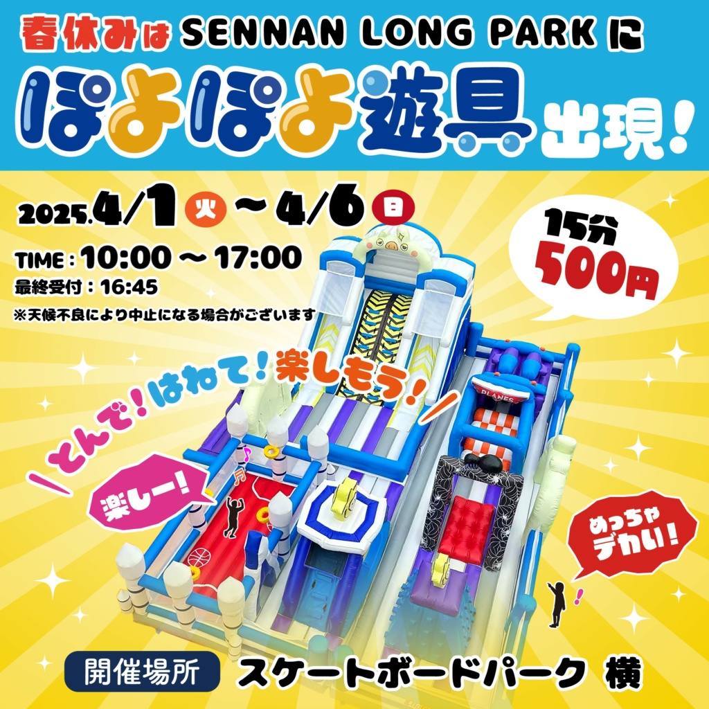 SENNAN LONG PARKに超大型エアー遊具が出現👀 春休み期間に子供の大好きなエアー遊具がSENNAN LONG PARKに出現します🌞 とっても大きなエアー遊具なので... -