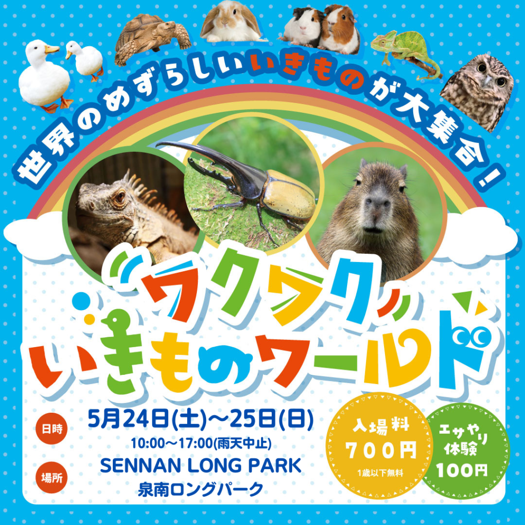 5月24日(土)、25日(日)ワクワクいきものワールド🐶🐰🐹🐔🦎🐢