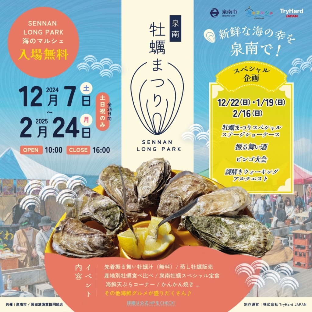 2024年12月7日(土)~2025年2月24日(月)泉南牡蠣まつり🌈
