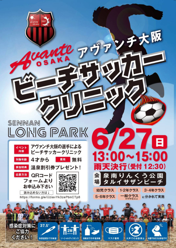 6月27日(日)AVANTE OSAKA ビーチサッカークリニック開催⚽