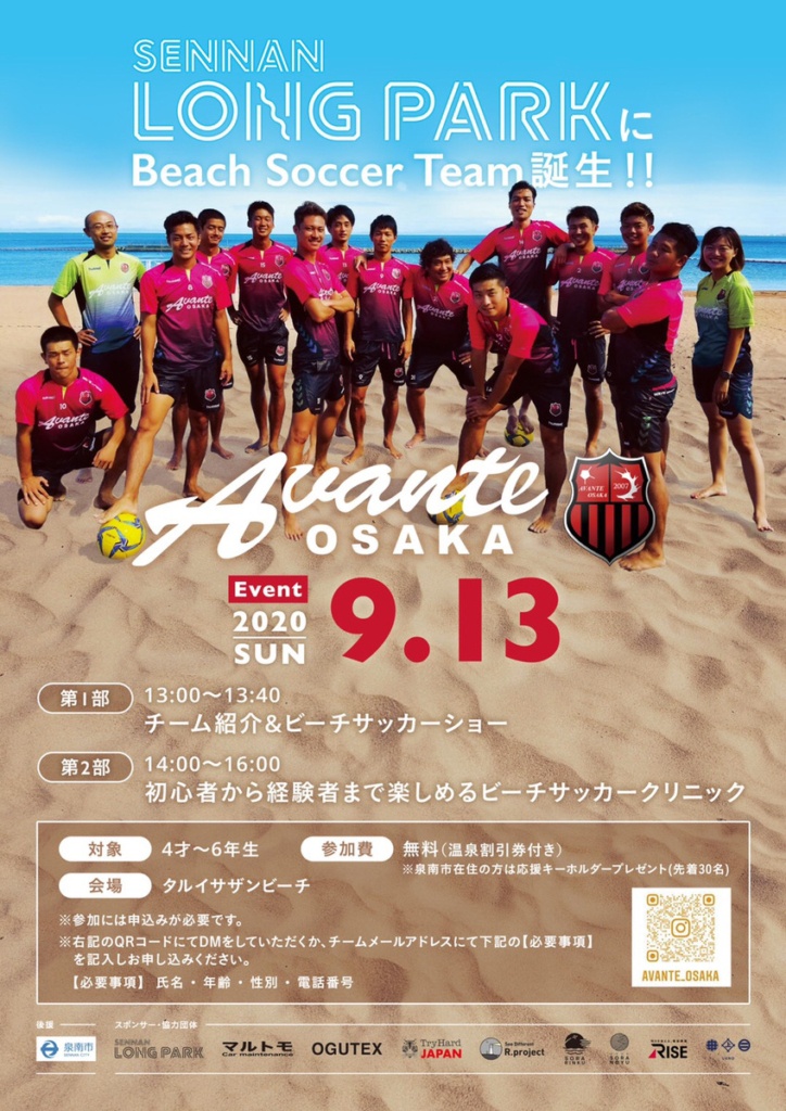 アヴァンチ大阪と一緒にビーチサッカーを楽しもう! 泉南市をホームタウンにサザンビーチで活動しているビーチサッカーチーム 「AVANTE OSAKA」がイベ... -