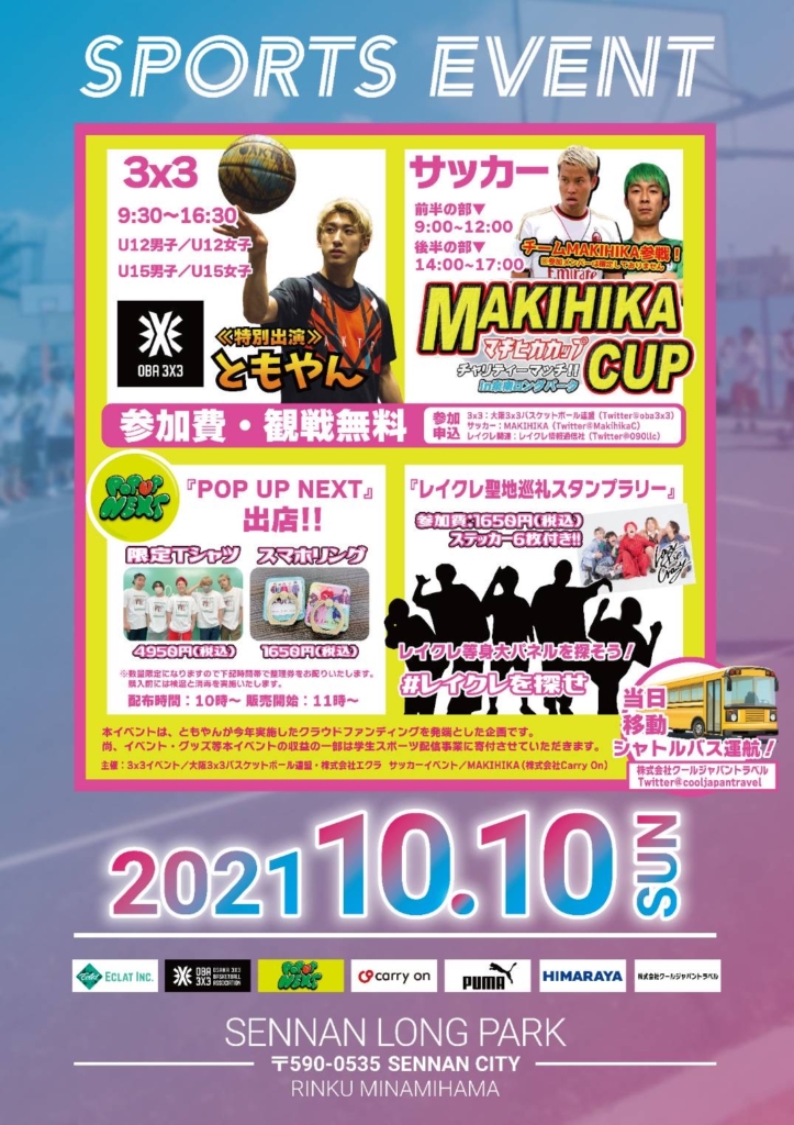日時:10月10日(日)大変長らくお待たせしました…SENNAN LONG PARKでイベントが開催されます🎶イベント盛りだくさん‼スポーツの秋をみんなで楽しみましょ... -