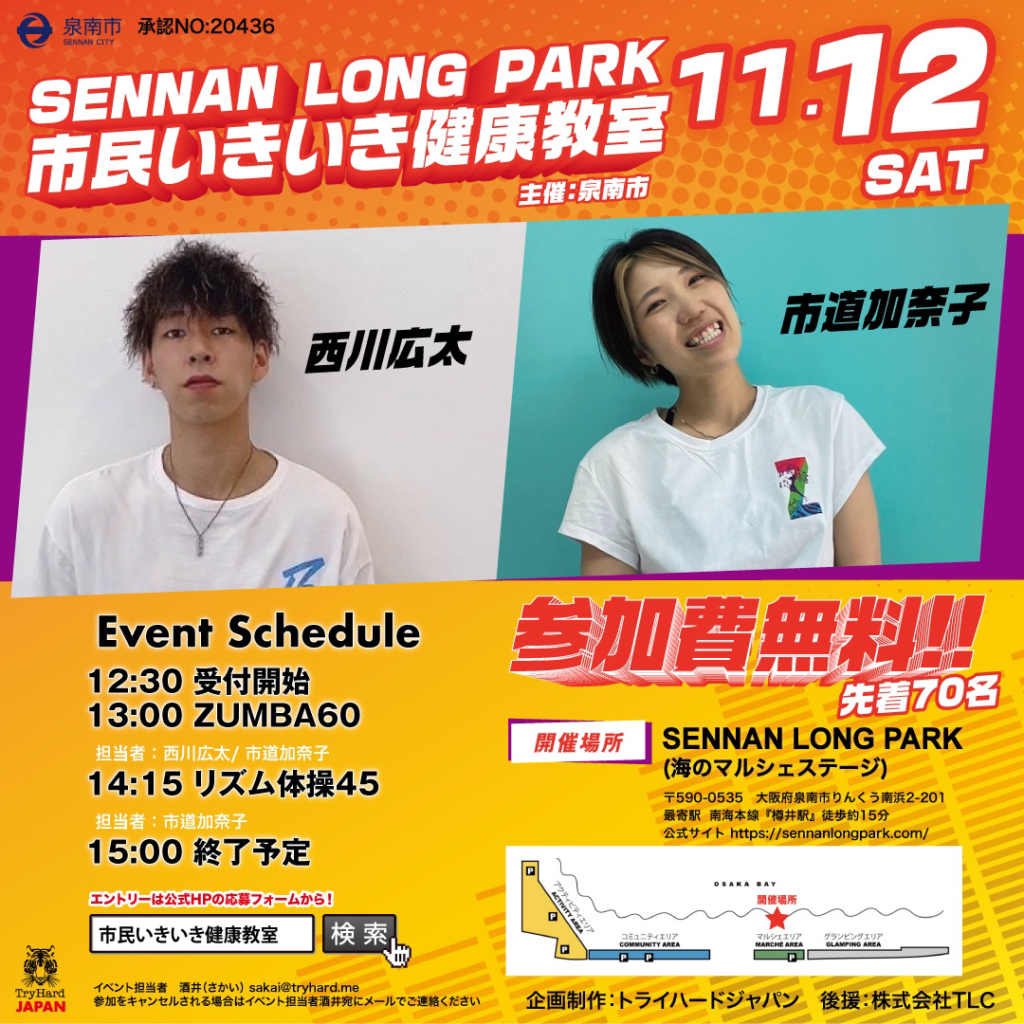 日 時:6月26日(日)時 間:13:00~15:00(受付開始 12:30~)参加費:無料!!場 所:SENNAN LONG PARK 海のマルシェステージ 市民いきいき健康教室が6月も開... -