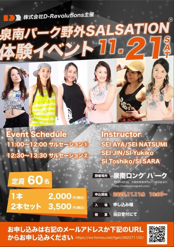 開催日:11月21日(土)時 間:➀11時00分〜12時00分 ②12時30分〜13時30分 ■インストラクターSEI AYASEI NATSUMISEI JINSI YUKIKOSI SALASI TOSHIKO ■参加料金1... -