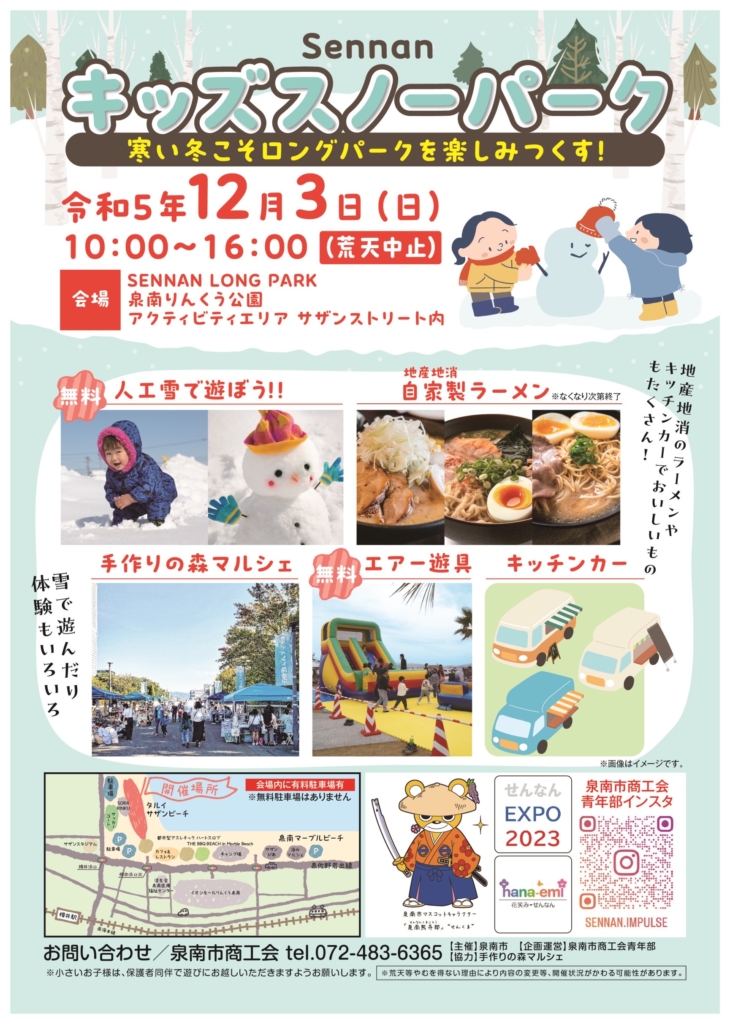 日 時:12月3日(日)時 間:10:00~16:00入場料:無料場 所:アクティビティエリア サザンストリート SENNAN LONG PARKのサザンストリートに雪がやってくるὄ... -