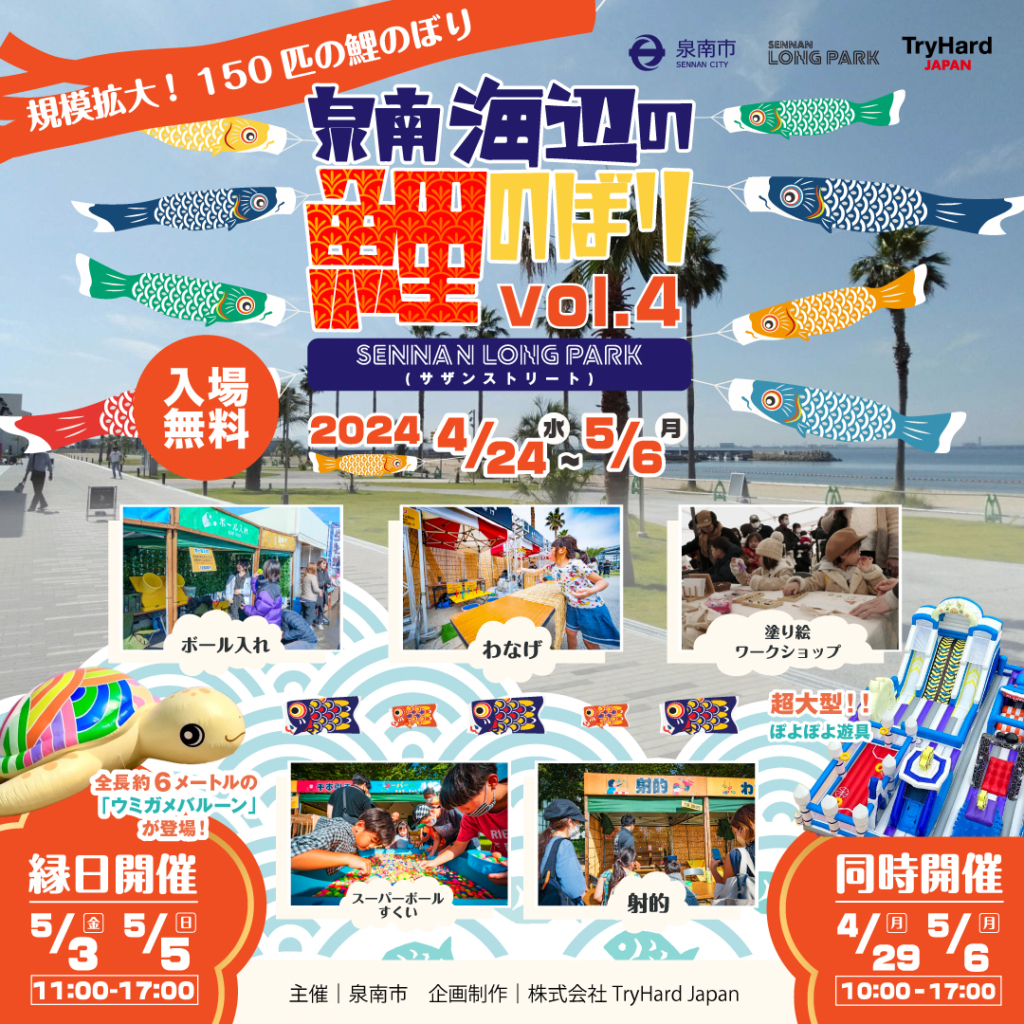 4月24日(水)~5月6日(月・祝)泉南海辺の鯉のぼりVol.4🎏