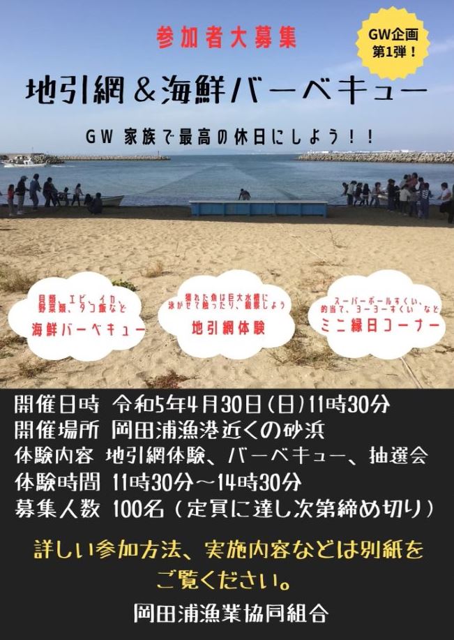 地引網&海鮮バーベキューを体験して、楽しい思い出に残るGW前半を過ごして下さい😆