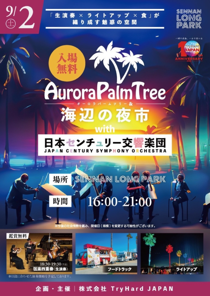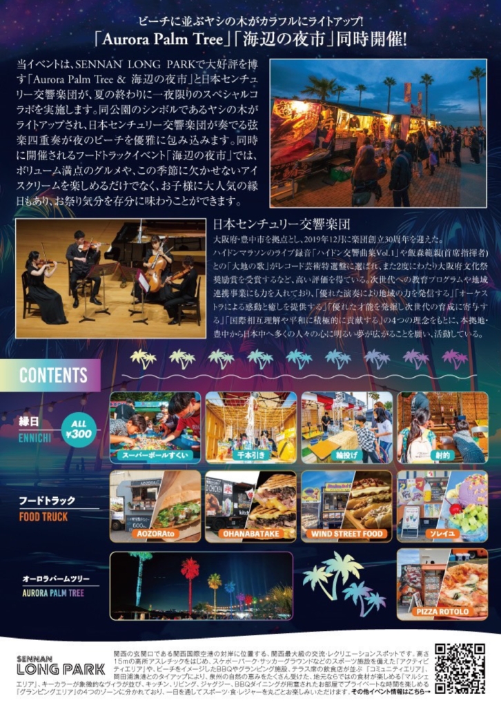 大好評のAurora Palm Tree🌴/海辺の夜市で日本センチュリー交響楽団の生演奏が聴ける👂