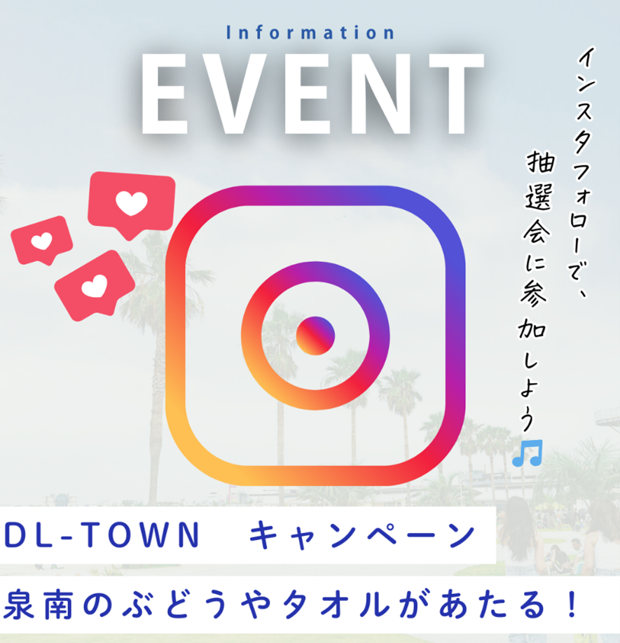 泉南りんくう公園の管理会社大和リースが運営する地域とつながるオンラインショッピングサイト「DL-TOWN」のインスタフォロー抽選会を開催します!