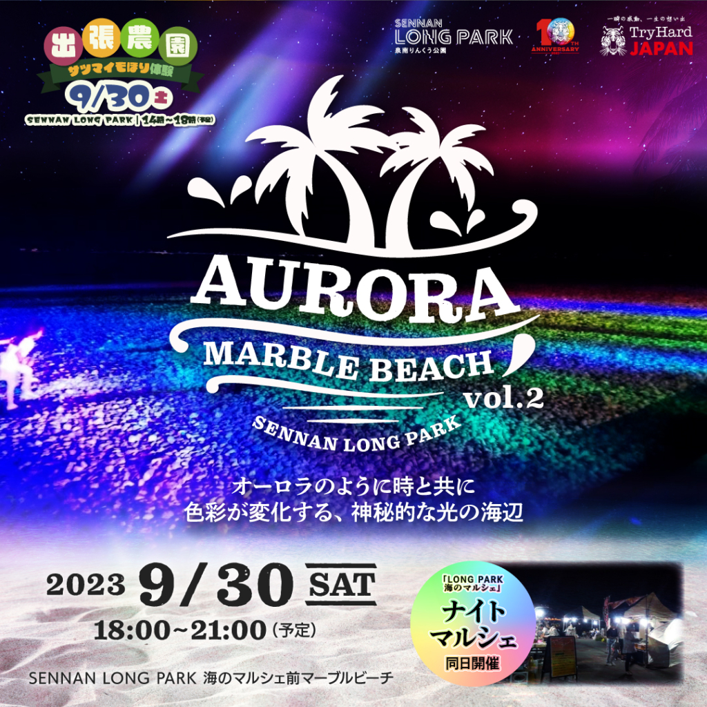 日時:9月30日(土)時間:18:00~21:00場所:SENNAN LONG PARK 海のマルシェエリア前マーブルビーチ やっと朝晩は気温も落ち着き、過ごしやすくなった時期になりました... -