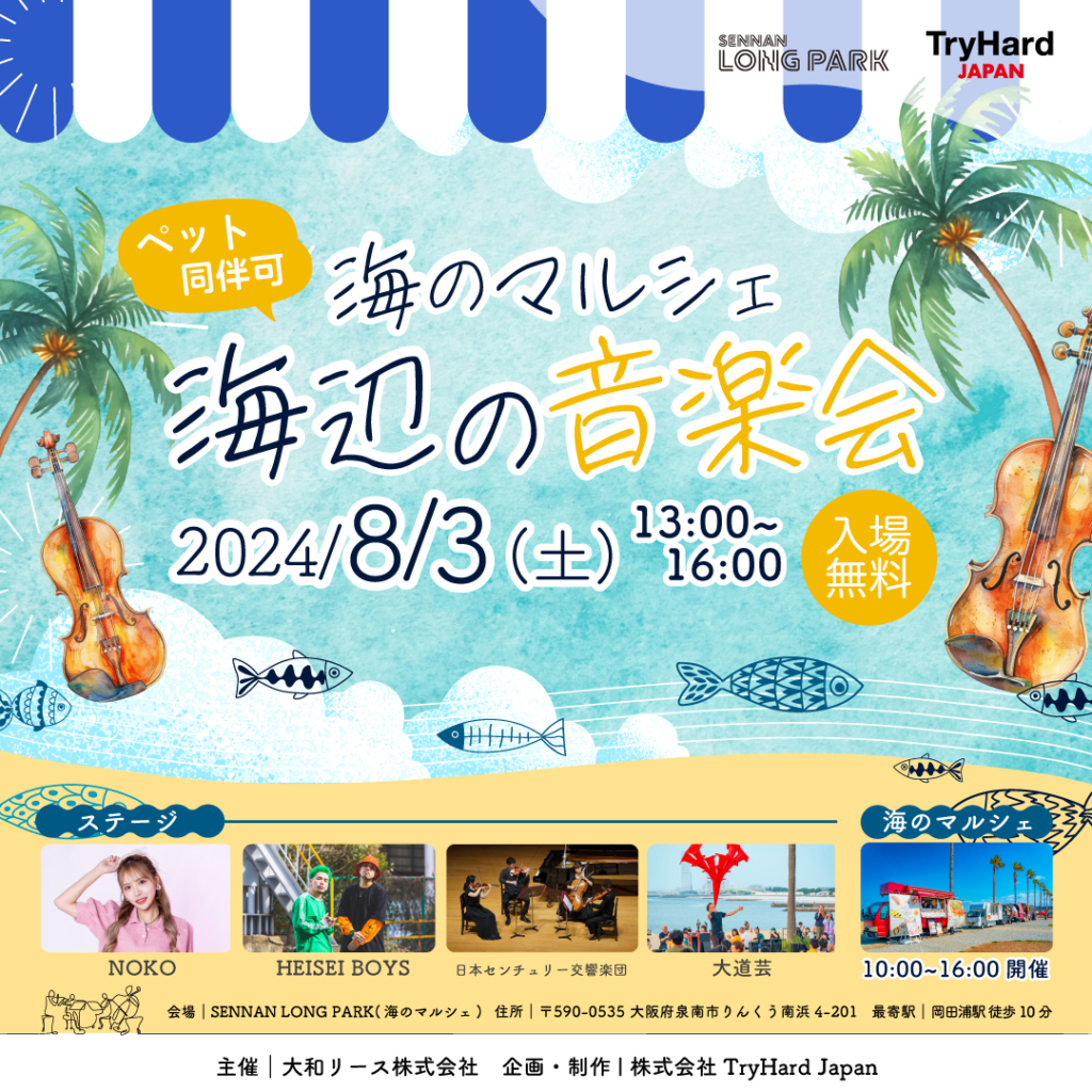 日程:2024年8月3日(土)時間:13:00~16:00場所:海のマルシェ料金:入場料無料✨ この日は音楽を聴きながら海のマルシェを楽しもう🎵 日本センチュリー... -